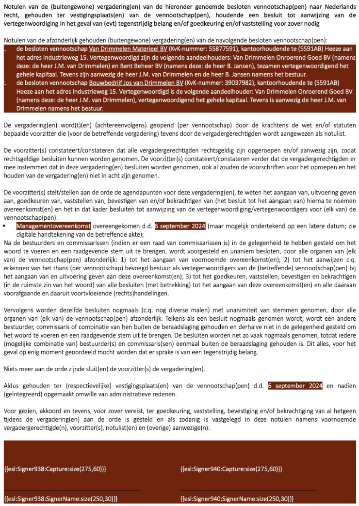 Bestuurders en vergadergerechtigden die moeten ondertekenen krijgen automatisch een handtekeningveld.