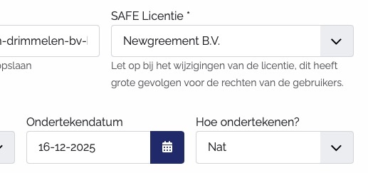 Kies de ondertekenmethode die past. Newgreement past het handtekeningenveld automatisch aan voor natte of digitale ondertekening (ook voor de AV-notulen).