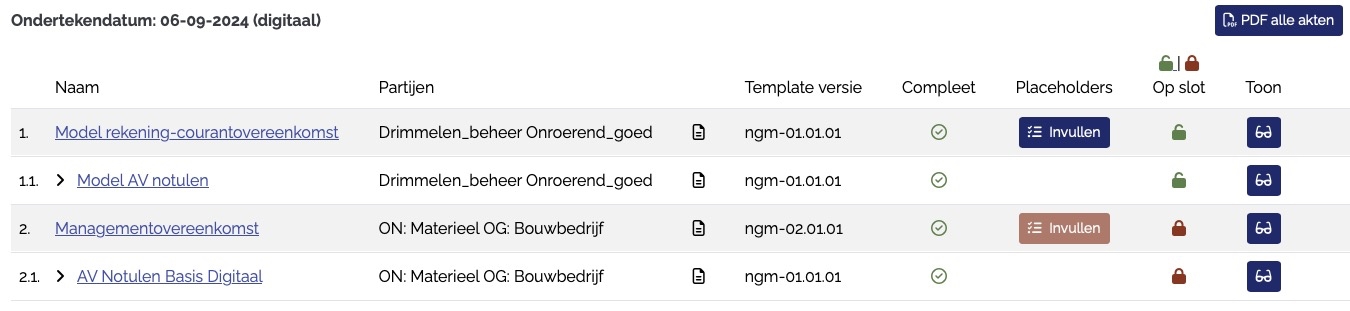 Stel akten op tussen verschillende entiteiten en/of natuurlijke personen in de structuur. Via zelf te definiëren placeholders vul je variabelen naar wens in, zodat iedere akte maatwerk blijft binnen een gestandaardiseerd proces.