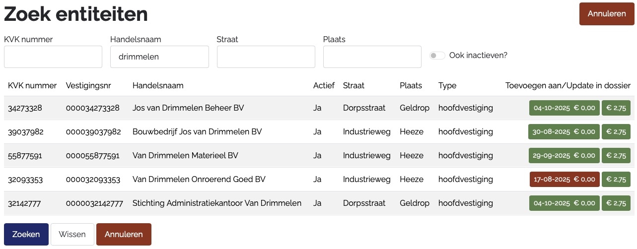 Eén bron van waarheid: gegevens uit KVK en jouw eigen aanvullingen blijven synchroon.