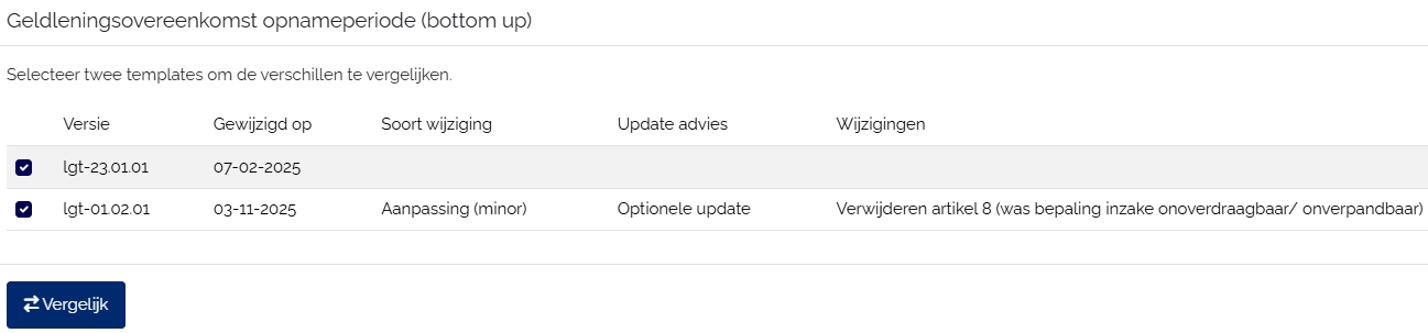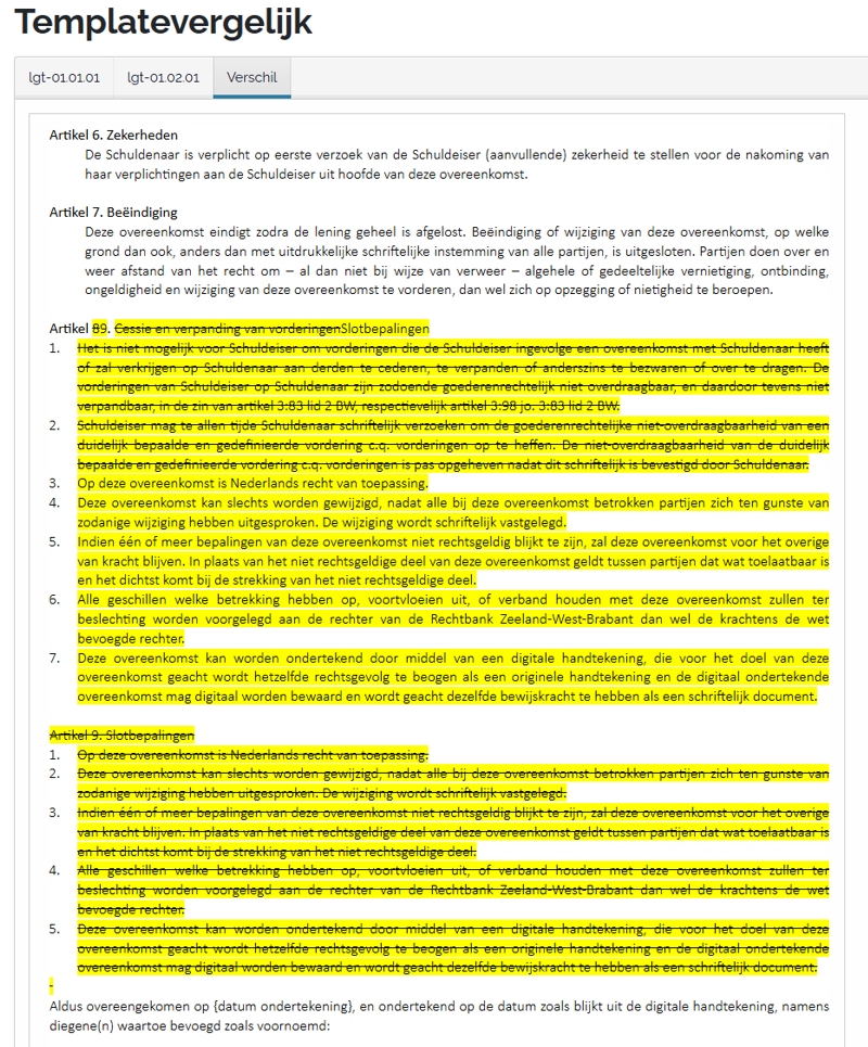 Alle versies blijven beschikbaar. Vergelijk oud en nieuw direct in Newgreement; verschillen worden visueel gemarkeerd voor snelle beoordeling.