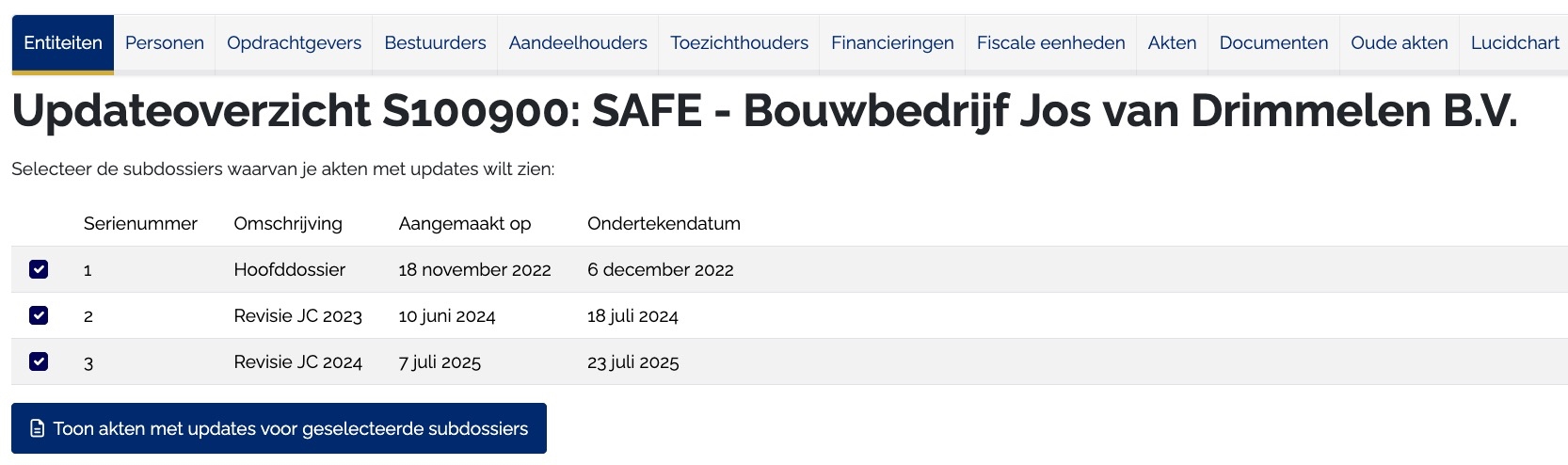 Vraag per klantdossier op waar updates beschikbaar zijn en laat Newgreement automatisch de nieuwe akten genereren in een subdossier. De placeholders worden overgenomen uit de verouderde akte voor minimale handmatige nazorg.